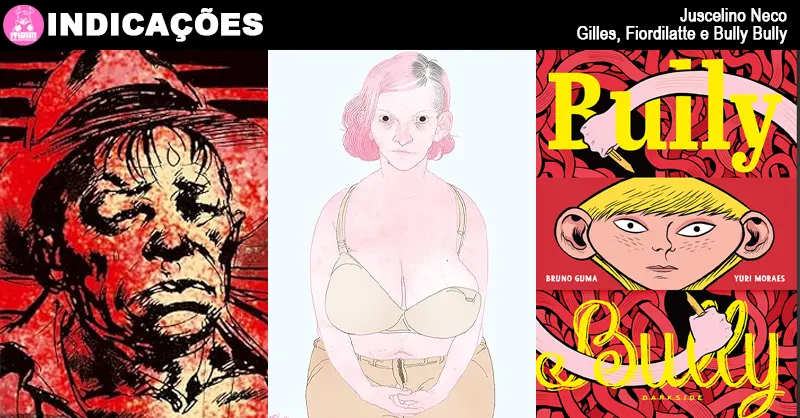 O quadrinista Juscelino Neco, autor de obras como Em Perfeito Estado e Matador de Unicórnios, indica as HQs Gilles Hamesh de Alejandro Jodorowsky, Fiordilatte de Miguel Vila e Bully Bully de Bruno Guma e Yuri Moraes.
